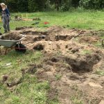 • Baumstümpfe -> Uns wurde nahegelegt diese selbst zu entfernen, das spart Kosten, da der Tiefbauer sonst, je nach Aufwand, extra Arbeit bei tiefen Wurzeln berechnen muss. Wir haben alle aus dem Baufeld entfernt und hoffen mal damit unseren Soll erledigt zu haben (Das war damit auch der erste Spatenstich. Ein Schickes Foto reichen wir noch mal nach  :D)